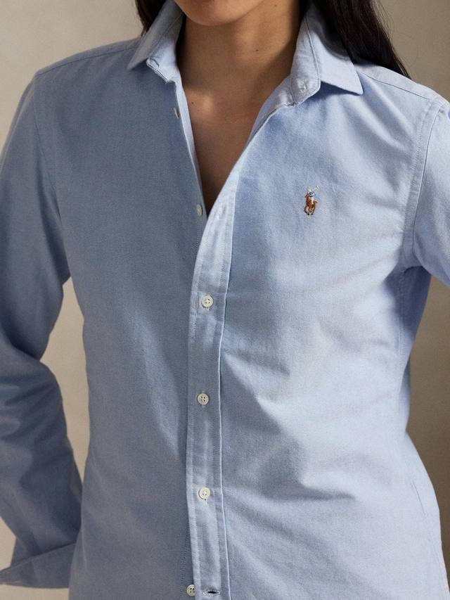 Эта рубашка Slim Fit в классическом стиле выполнена из мягкого хлопкового оксфорда Ralph Lauren и дополнена разноцветной вышитой на груди фирменной надписью Пони.