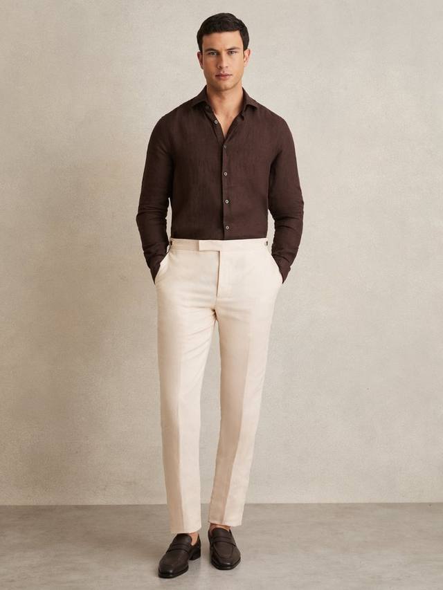 Пора разжечь барбекю и насладиться летним солнцем. Эта льняная рубашка от Reiss с прохладной ручкой, которая сохранит вашу свежесть, имеет классический крой.