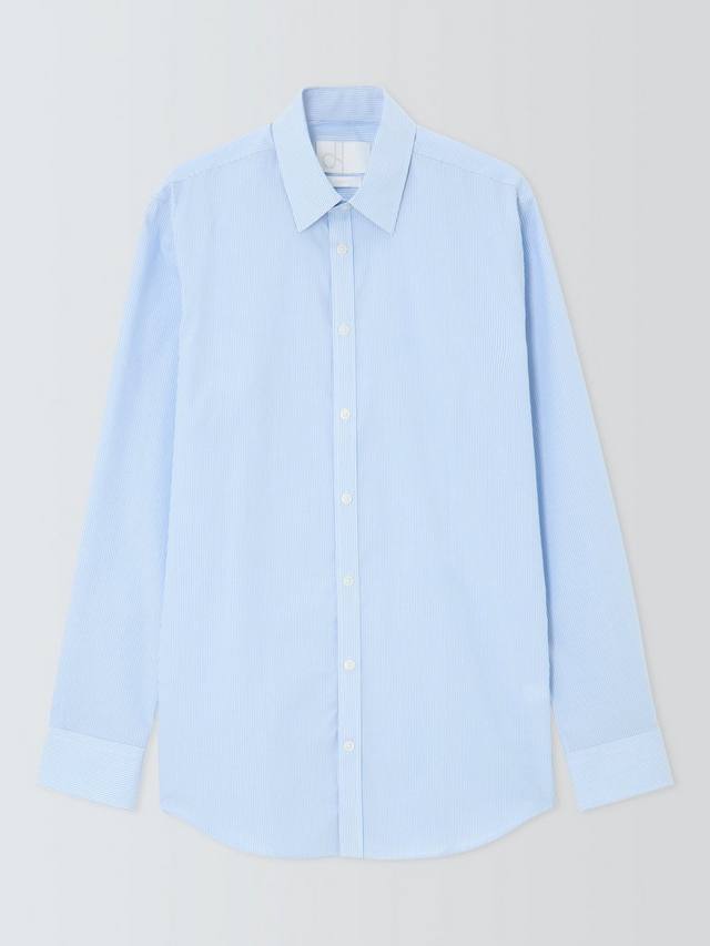 Эта рубашка из мягкого хлопка с едва заметной полосатой отделкой также может похвастаться одинарными манжетами и классической застежкой на пуговицы для максимальной универсальности стиля.