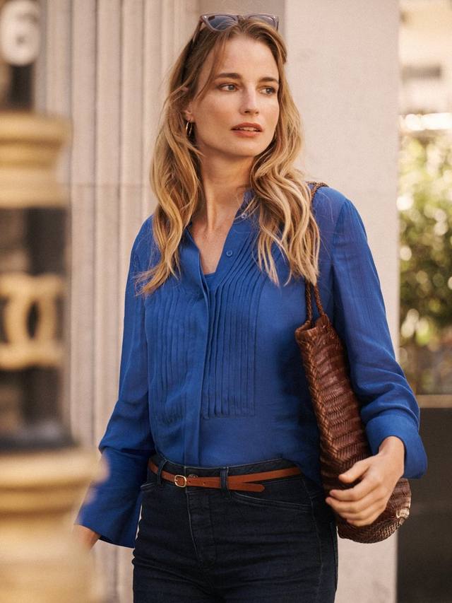Платье Sybil, выполненное из слегка жатого жоржета, отличается изящными складками, закругленным укороченным подолом и мягкими сборками на спине для свободы движений. Глубокие манжеты с двумя пуговицами и потайная планка на пуговицах добавляют элегантности, дополняется съёмной комбинацией. Удобно и практично, сколько угодно.