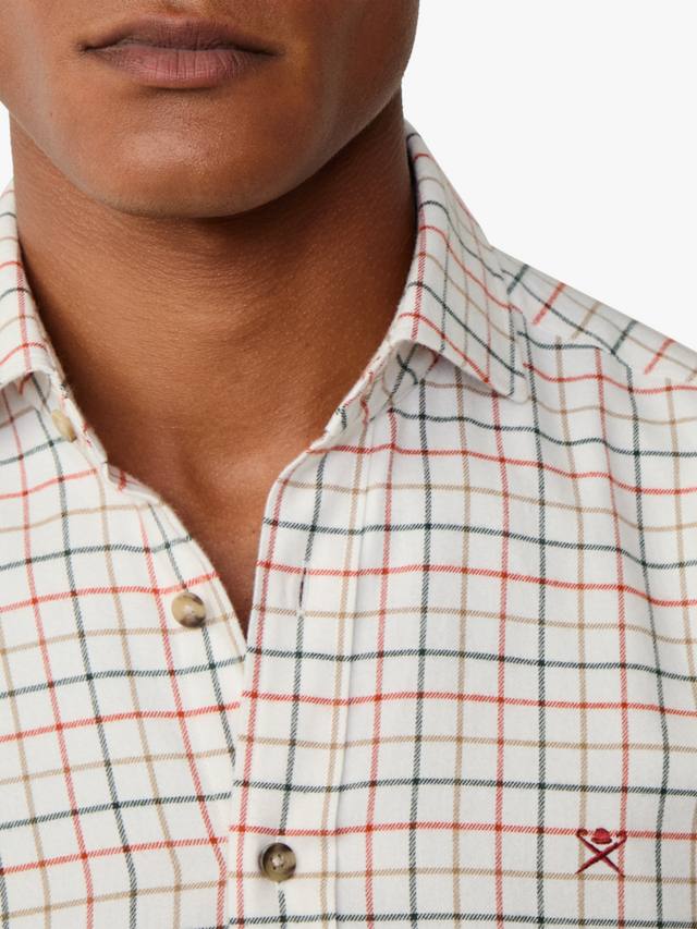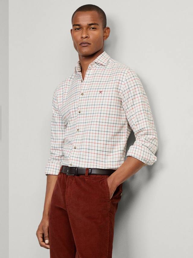 Эта рубашка с приталенным кроем, создающим четкий, структурированный образ, имеет вырезной воротник Kent, характерный для классических рубашек Hackett. Она выполнена из фланели с начесом, с крупной клеткой Tattersall и изящной меланжевой отделкой для дополнительной фактуры.