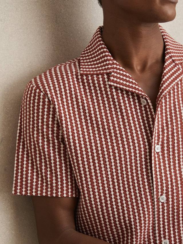 Эта рубашка из хлопковой смеси от Reiss станет прекрасной основой для ваших повседневных базовых вещей. Она украшена фактурным полосатым узором и имеет свободный силуэт.