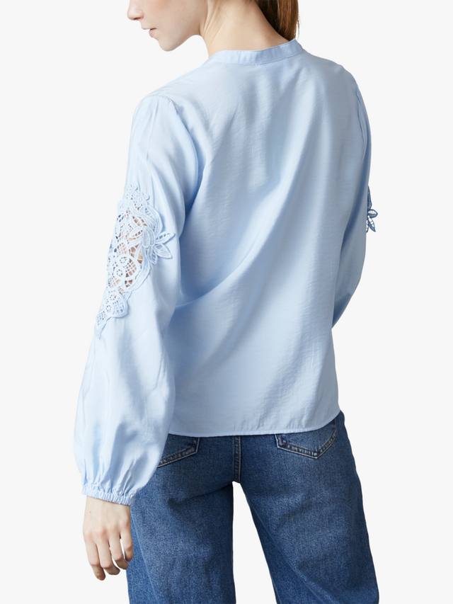 Viaba — лёгкая и воздушная рубашка с длинными рукавами. У рубашки глубокий V-образный вырез и длинные рукава с эластичными манжетами. Рубашка украшена изящными кружевными деталями.
