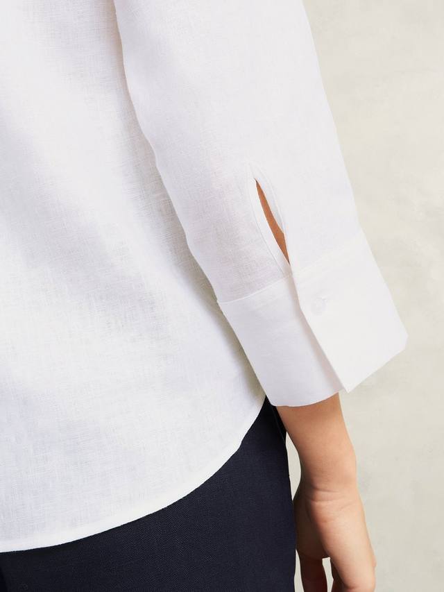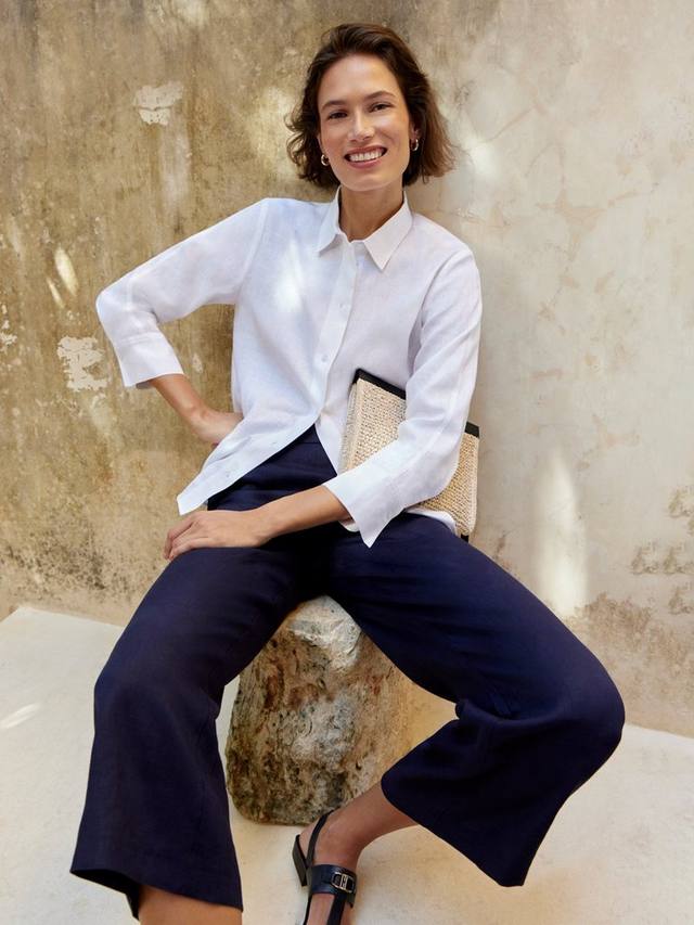 Рубашка Vita от Hobbs изготовлена из дышащего льна и имеет свободный крой, классический воротник, застежку на пуговицы спереди и рукава длиной три четверти.