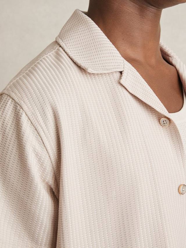 Для выходных дней, когда требуется более элегантный стиль, эта фактурная рубашка с короткими рукавами от Reiss имеет свободный силуэт и достаточно легкую для многослойного ношения.