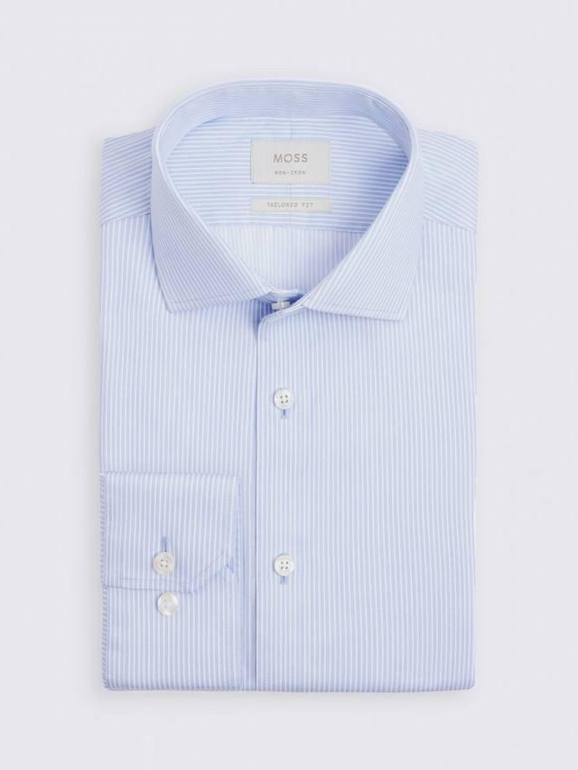 Cotton Tailored Fit Stripe Shirt Moss, Blue