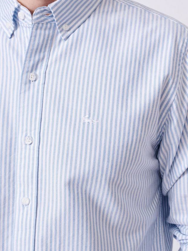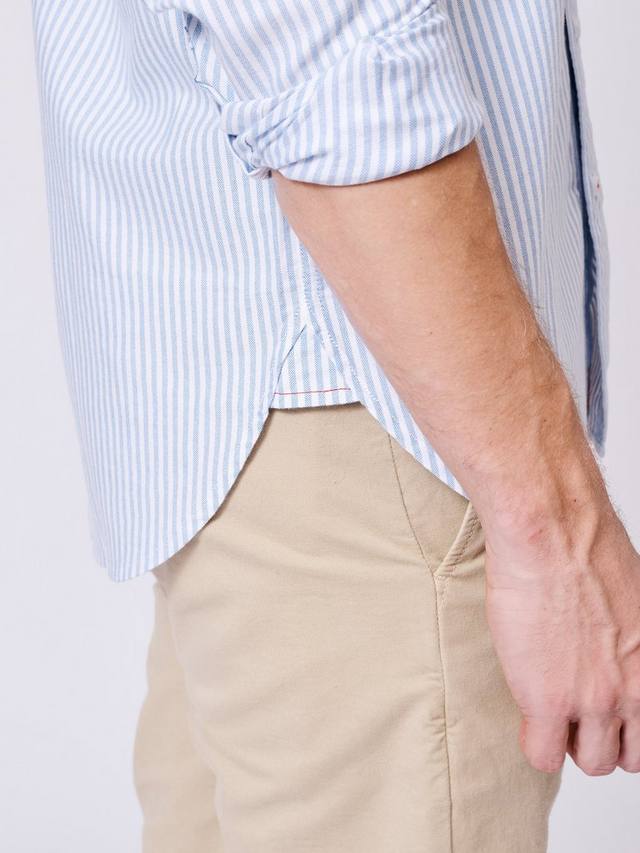 Полоски в стиле саржевого кроя – классика, делающая эту рубашку незаменимой вещью в любом гардеробе. Изготовлена из 100% хлопка.