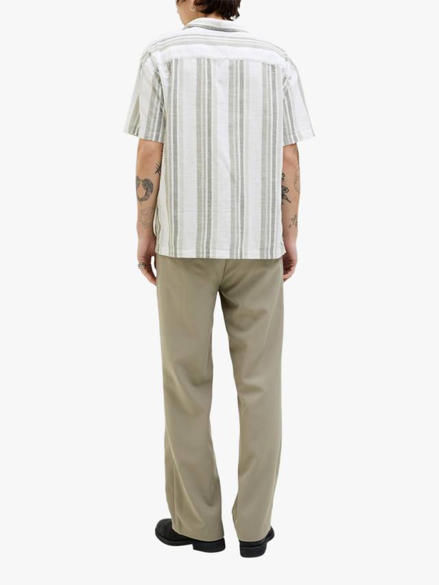 Эта легкая и воздушная рубашка с короткими рукавами, дополненная контрастными полосками, способна стать ключевым компонентом многих образов для теплой погоды.