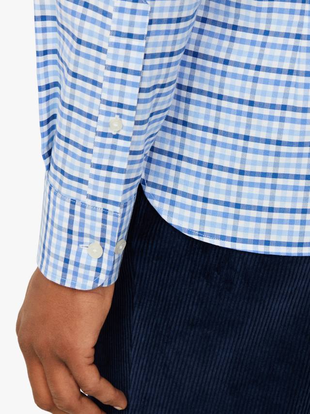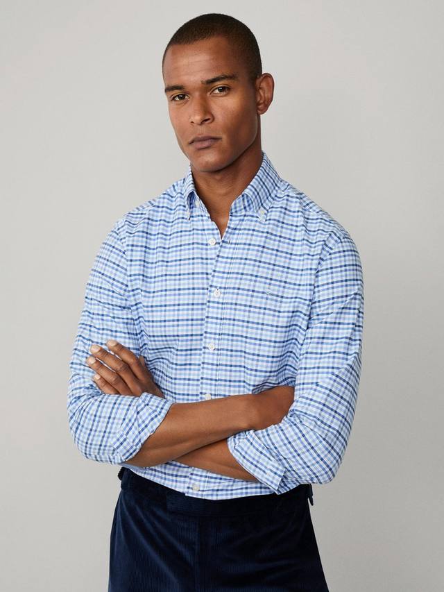 Приталенный крой для создания строгого, структурированного образа. Отличается воротником Hampstead на пуговицах и вышитым логотипом на груди. Трехцветный рисунок в клетку гингем добавляет яркий визуальный эффект. Связано из тонкого оксфордского хлопка для комфорта и долговечности.