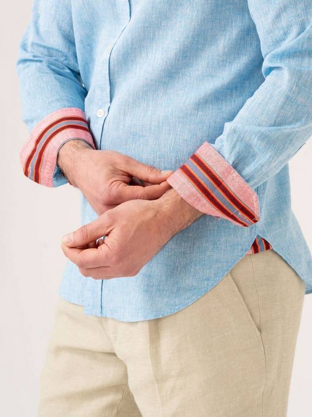 Роскошное сочетание хлопка и льна с эффектными полосатыми вставками из африканской ткани кикой. Яркие детали придают этой рубашке уникальный вид, наполненный глубокой историей и глубоким смыслом.