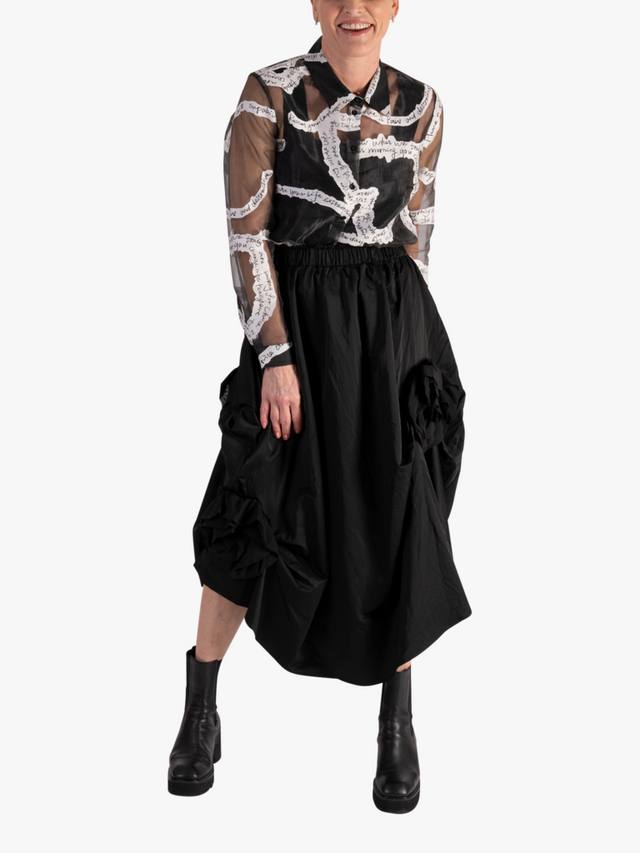 Эта современная рубашка из прозрачной органзы станет прекрасным дополнением к вашей коллекции и мгновенно произведет впечатление благодаря рукописному поэтическому рисунку по всей поверхности. С аккуратным воротником и длинными рукавами, эта рубашка сшита из легкой, но прочной органзы и станет шикарным дополнением к вашему репертуару, делая ее идеальным предметом для привлечения внимания на вечерних вечеринках.
