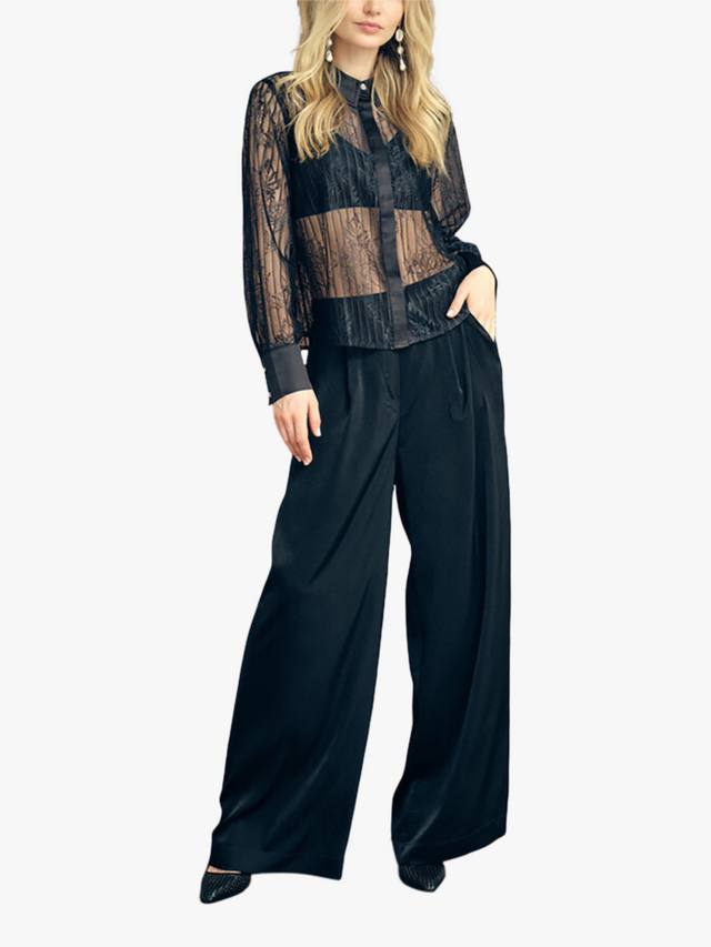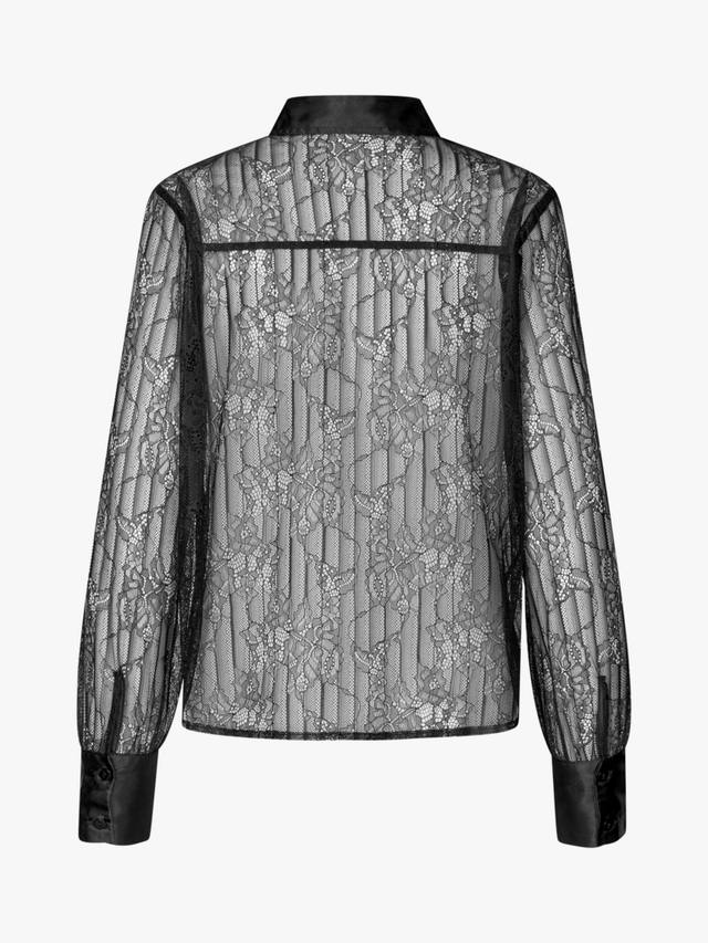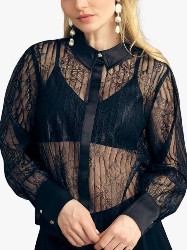 Рубашка из флорентийского кружева выполнена из прозрачного кружевного материала. Застёжка по всей длине – потайная планка. Рукава заканчиваются классической манжетой, застёгивающейся на серебристые пуговицы.