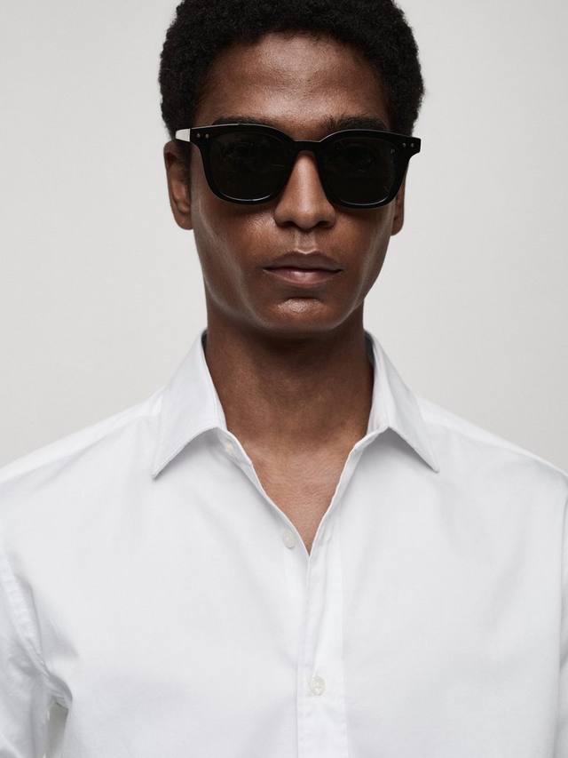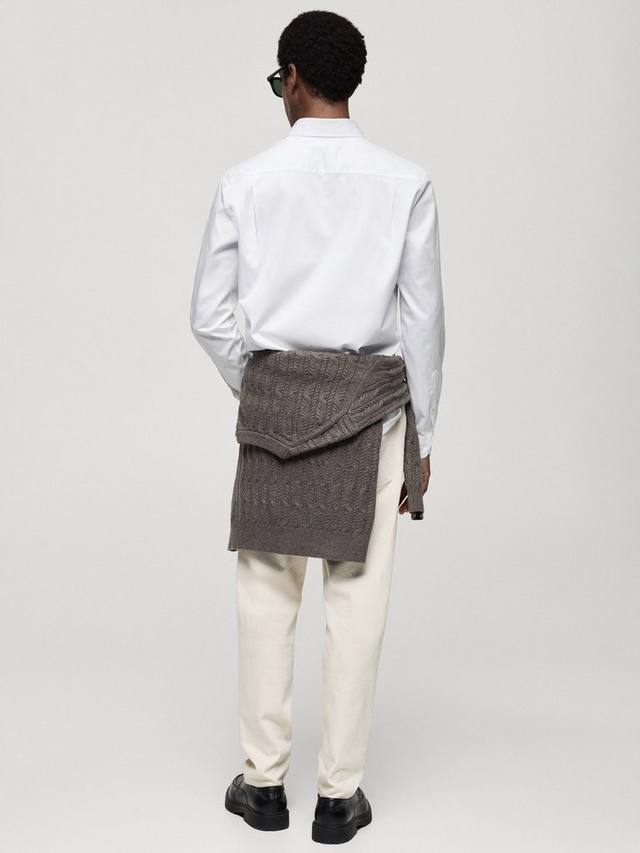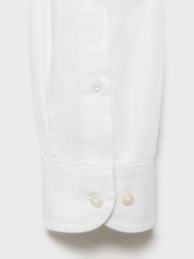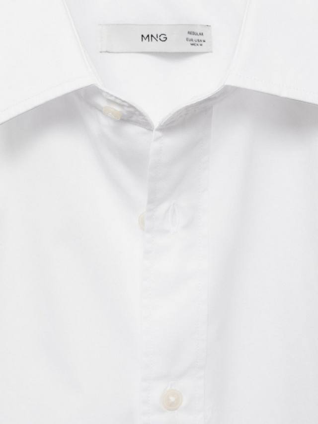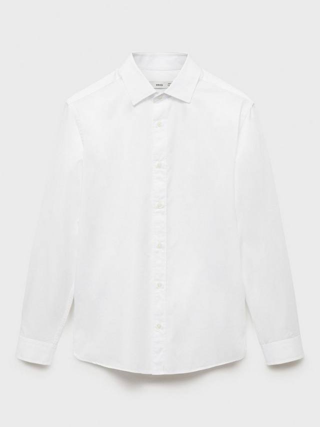 Хлопковая рубашка с длинными рукавами классического кроя от Mango. Классический воротник, застежка на пуговицы, манжеты на пуговицах и закругленное основание.
