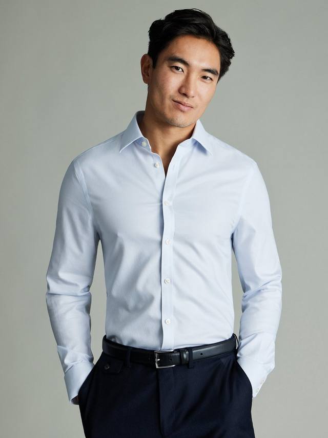 Эта рубашка Charles Tyrwhitt, выполненная из хлопка средней плотности для универсальности в любое время года, также имеет удобную отделку, не требующую глажки, что делает ее идеальным выбором для людей с плотным графиком.
