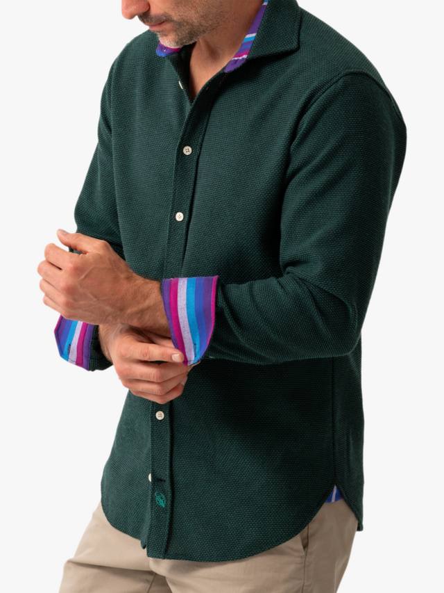 Эта рубашка сшита из мягкого хлопка и украшена полосатой африканской тканью кикой на воротнике и манжетах. Яркие штрихи отделки придают этой рубашке уникальный вид, наполненный глубокой историей и глубоким смыслом.