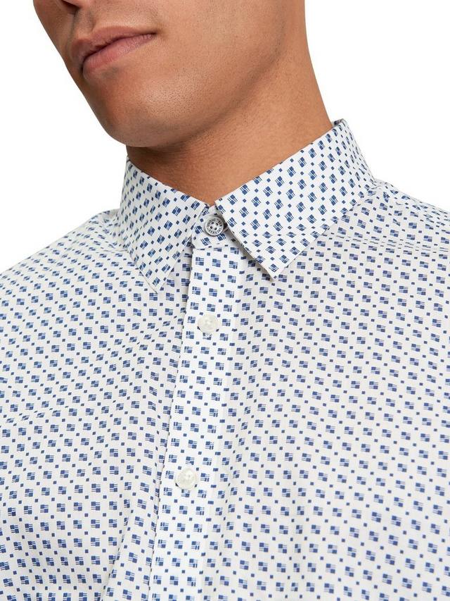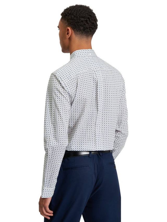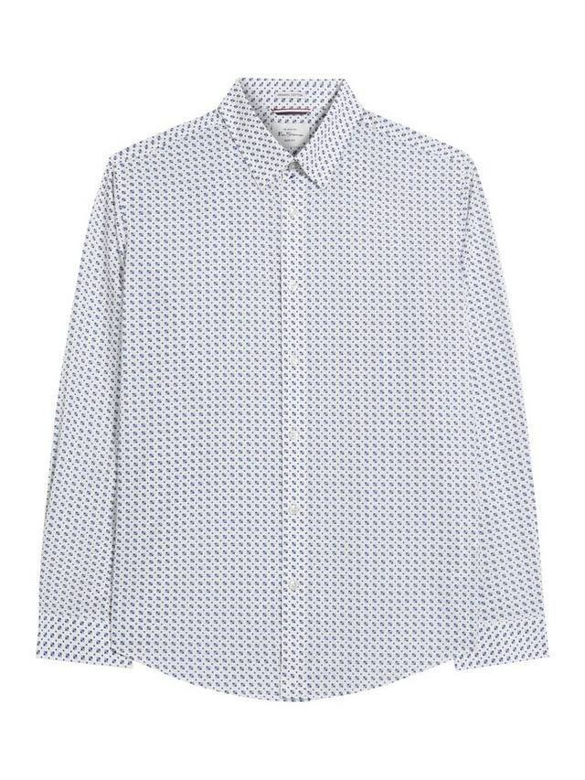 Рубашка прямого кроя с моноблочным принтом. Изогнутый подол, классический заостренный воротник на пуговицах и тканая этикетка с логотипом Ben Sherman на боковом шве.