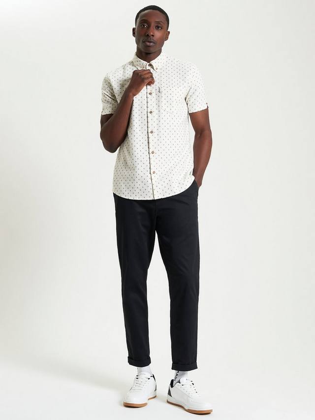 Эта рубашка с короткими рукавами и геометрическим принтом, изготовленная из 100% хлопка, имеет воротник на пуговицах и фирменную тканую этикетку Ben Sherman на нагрудном кармане. Классический крой с закругленным подолом.