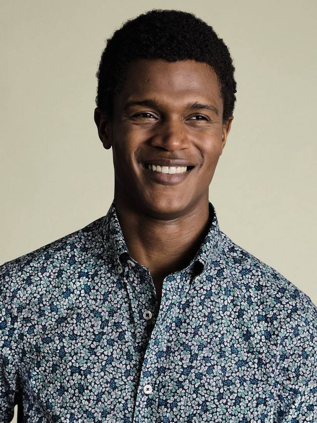 Эта рубашка, которую не нужно гладить, рассчитана на теплую погоду и изготовлена из мягкого хлопка с ярким принтом.