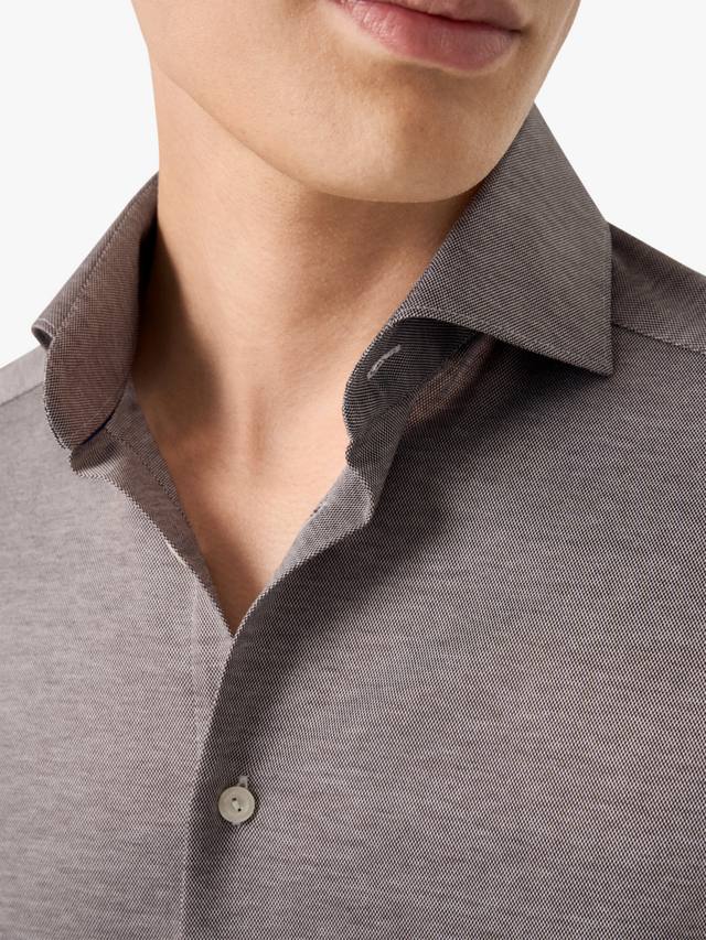 Универсальная рубашка из жаккардового джерси, связанного в Северной Италии. Натуральная эластичность сочетает комфорт с красивой текстурой, а сама ткань изготовлена из тонкой пряжи Filo di Scozia, которая прядется, скручивается и обрабатывается газом для придания ей исключительной тонкости, прочности и красивого блеска. Носите с элегантно-повседневными или повседневными образами для создания неизменного стиля.