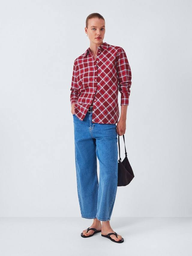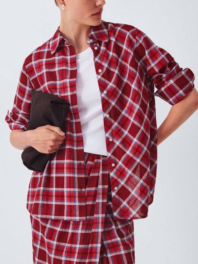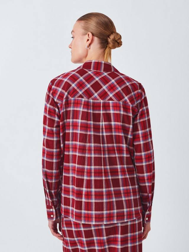 Мягкая хлопковая рубашка в обновлённую клетку с контрастным перевёрнутым рисунком. Классический крой с застёжкой на пуговицы спереди и воротником. Идеально сочетается с джинсами.