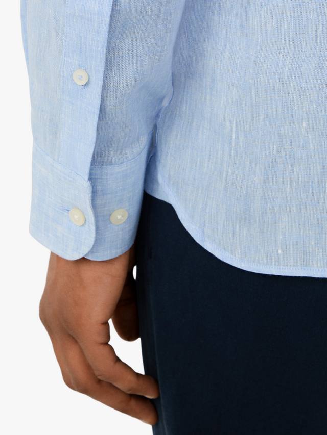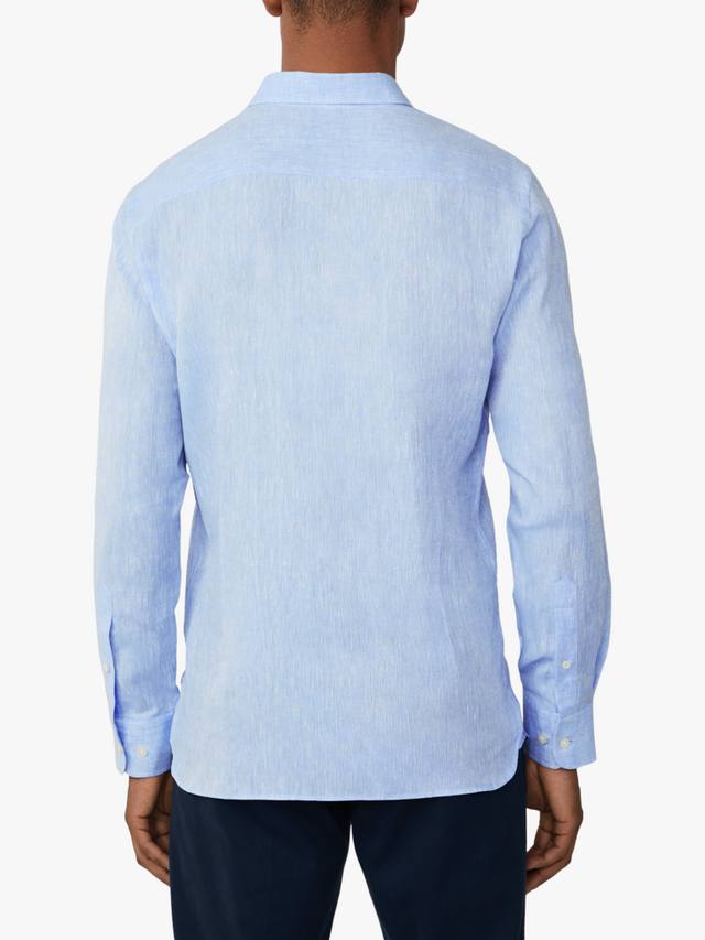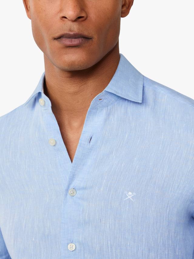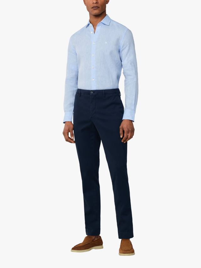 Приталенный крой с чётким структурированным внешним видом и вырезным воротником Kent, характерным для классических рубашек Hackett. Французская планка создаёт более строгий и официальный вид. Рубашка из чистого льна идеально подходит для лета. Контрастная вышивка логотипа добавляет стильный штрих.