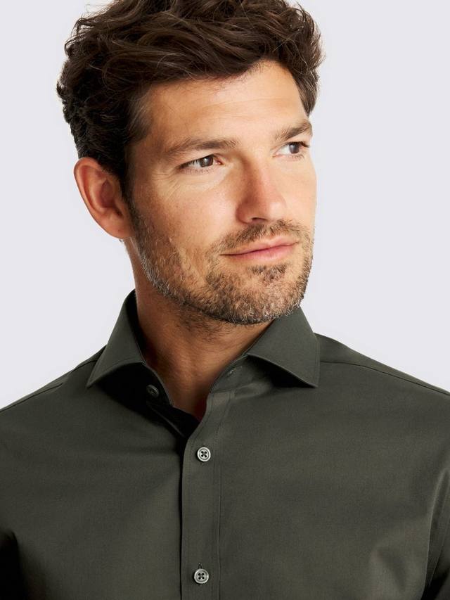Эта рубашка приталенного кроя зеленого цвета, удобная в носке, обеспечит стиль и комфорт в течение всей недели. Мягкая на ощупь ткань с высоким содержанием хлопка обеспечивает воздухопроницаемость и высокую эластичность для свободы движений. Качественный материал и продуманное сочетание материалов делают эту универсальную и стильную вещь для вашего гардероба.