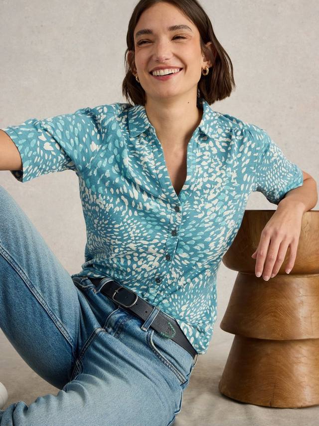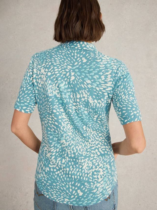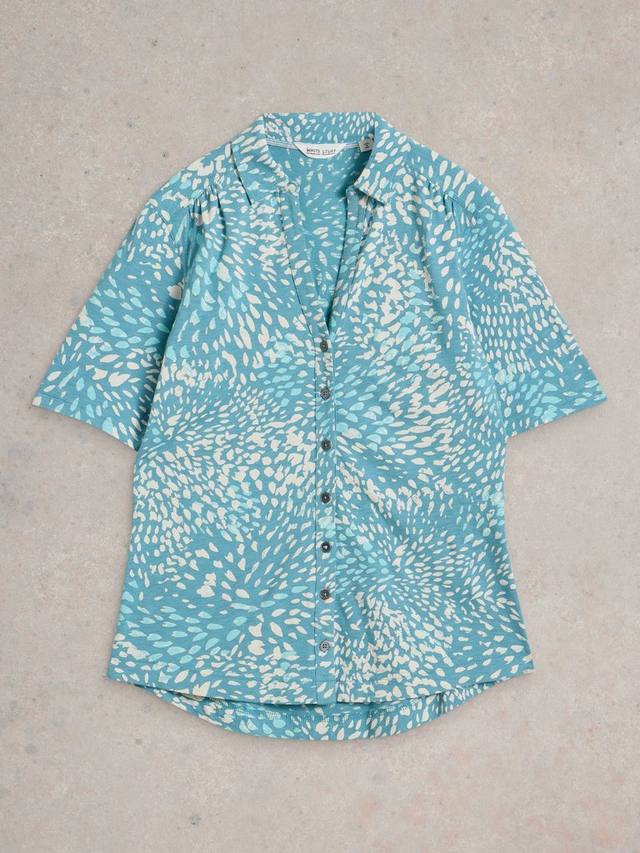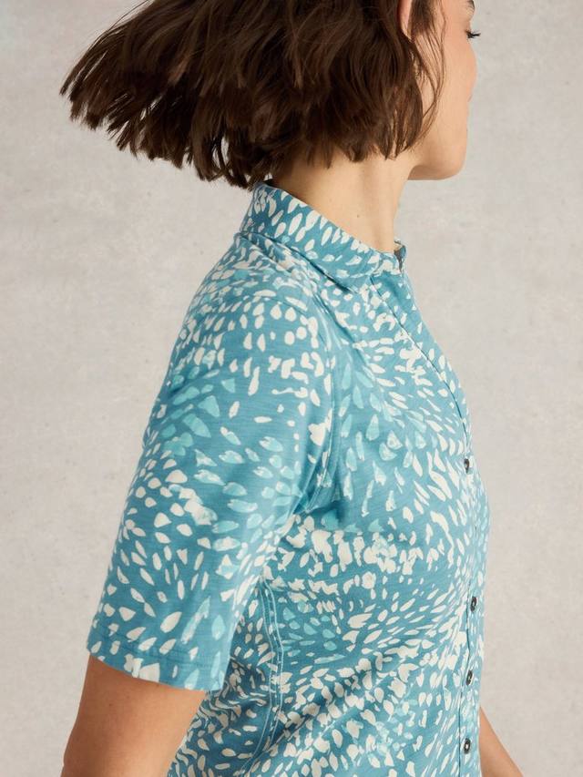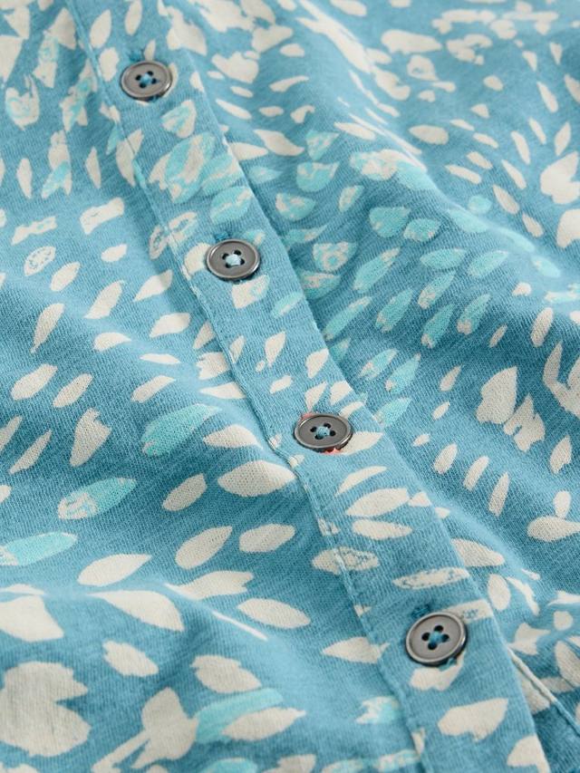 Рубашка из хлопкового трикотажа с короткими рукавами, застегивающаяся на пуговицы и абстрактным принтом.