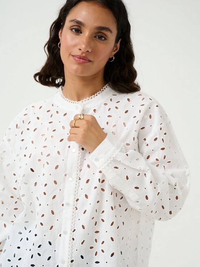 Эта вышитая рубашка от KAFFE идеально подходит как для повседневных, так и для торжественных случаев. Она лёгкая и воздушная на лето. Слегка округлый вырез горловины и длинные рукава. Рубашка выполнена из хлопка для комфортной носки.
