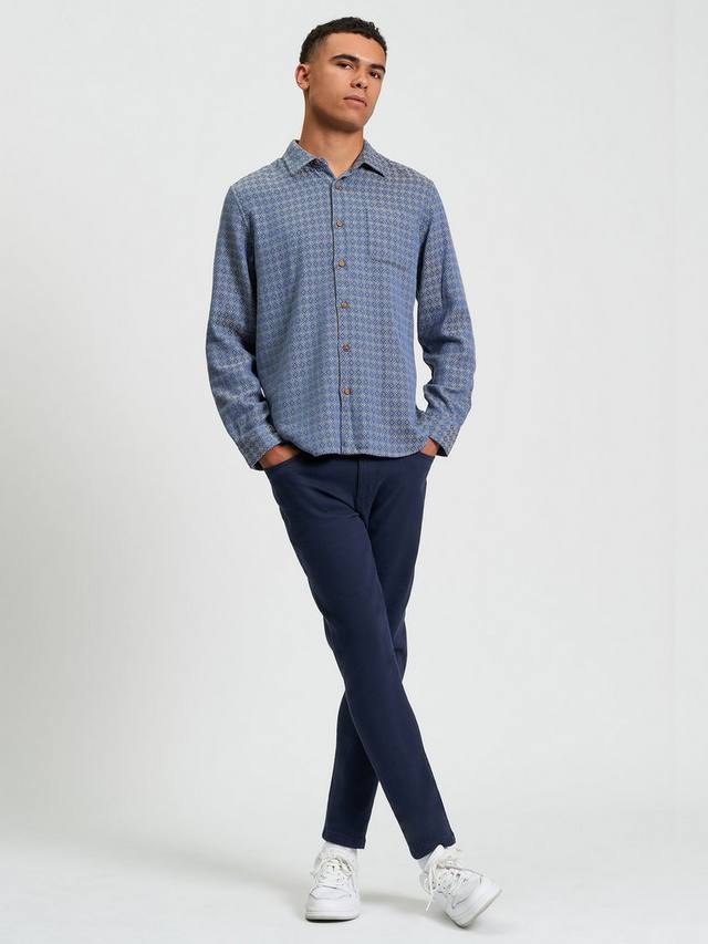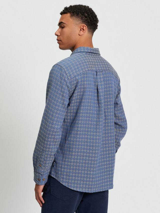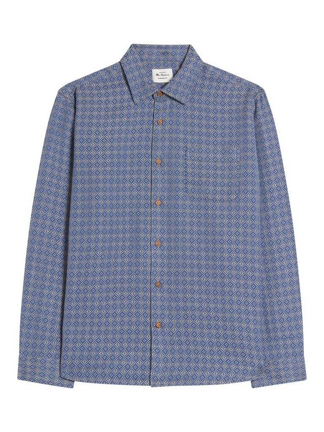Эта рубашка с длинными рукавами и геометрическим узором, выполненная из 100% хлопка, выполнена в британском стиле. Она имеет свободный заостренный воротник и фирменную тканую этикетку Ben Sherman на боковом шве. Классический крой с закругленным подолом.