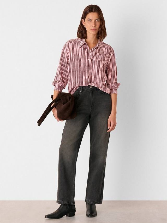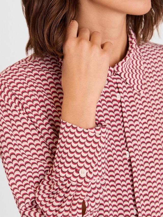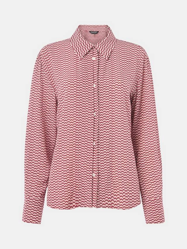 Эта блузка с геометрическим узором, острым воротником и эффектными пуговицами добавит индивидуальности любому дню. Плавный крой позволяет вам свободно выражать себя.