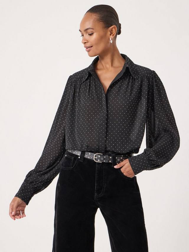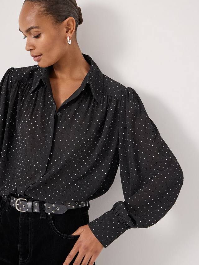 Блузка-рубашка от HUSH. Воротник-стойка, длинные рукава и рисунок в горошек с бриллиантами. Идеально отполированная и украсит ваш повседневный образ.