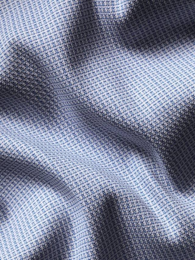 Вы оцените исключительное качество саржевого переплетения, его гладкую текстуру и свободу движений благодаря дополнительной эластичности и разрезу на кокетке сзади. Эта лёгкая и дышащая ткань обеспечит комфорт в жаркие дни благодаря естественным влагоотводящим свойствам. Для создания непринужденного образа бренд выбрал закругленные манжеты на одной пуговице и полуотложной воротник с легкой подкладкой, а также отделку, не требующую глажки.