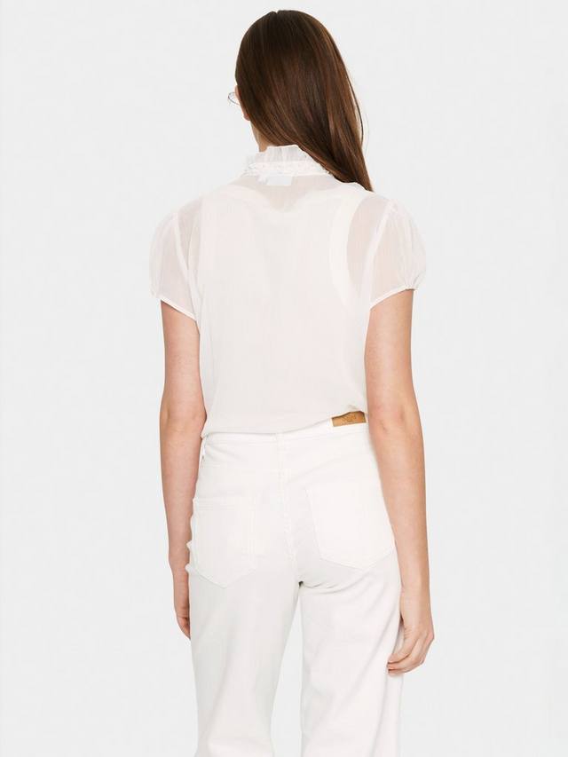Эта блузка с короткими рукавами, строгим воротником и удобной застёжкой на пуговицы сделает ваше утро проще. Она обеспечит комфорт в течение всего дня и поможет вам выглядеть стильно, легко перемещаясь между встречами, бранчами и спонтанными мероприятиями.