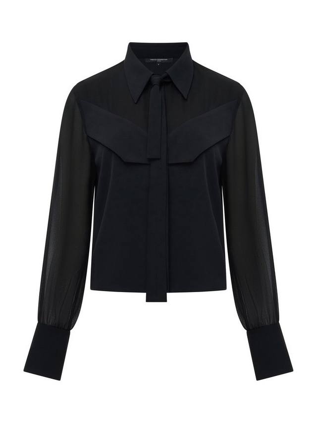 Эта изысканная рубашка была обновлена с модным акцентом. Рубашка Arezzo Neck Tie Shirt прямого кроя с полупрозрачными рукавами и верхней частью лифа, острым воротником и завязывающимся на резинке вырезом.