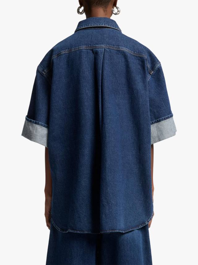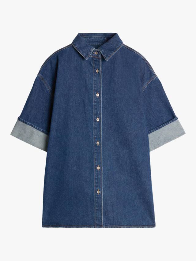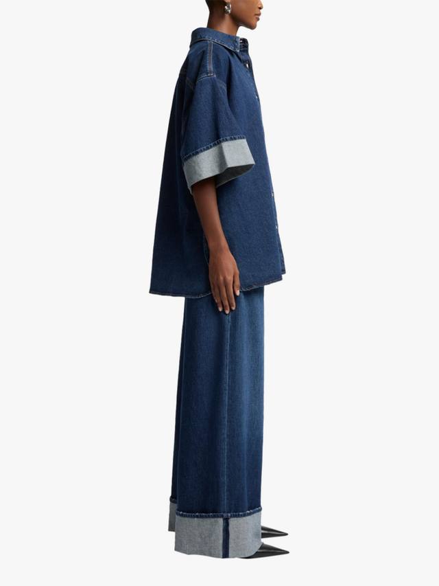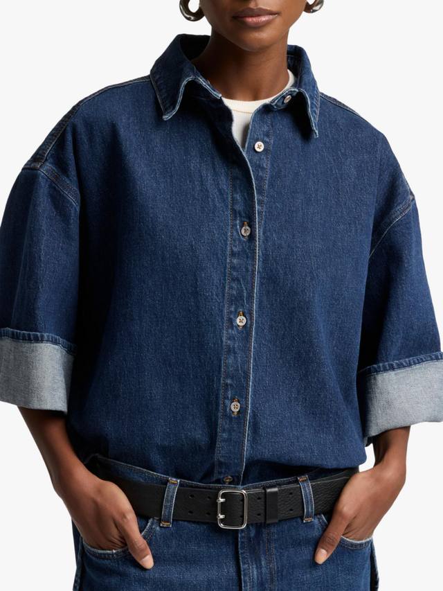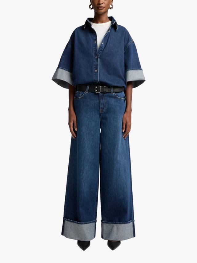 Новинка этого сезона, рубашка Nina Overshirt – это современная интерпретация классического денима. Изготовленная из тёмного денима Mankind, она отличается преувеличенным свободным силуэтом с острым воротником, планкой на пуговицах и широкими отворотами рукавов. Играйте с пропорциями, сочетая её с ультра-широкими джинсами и балетками.