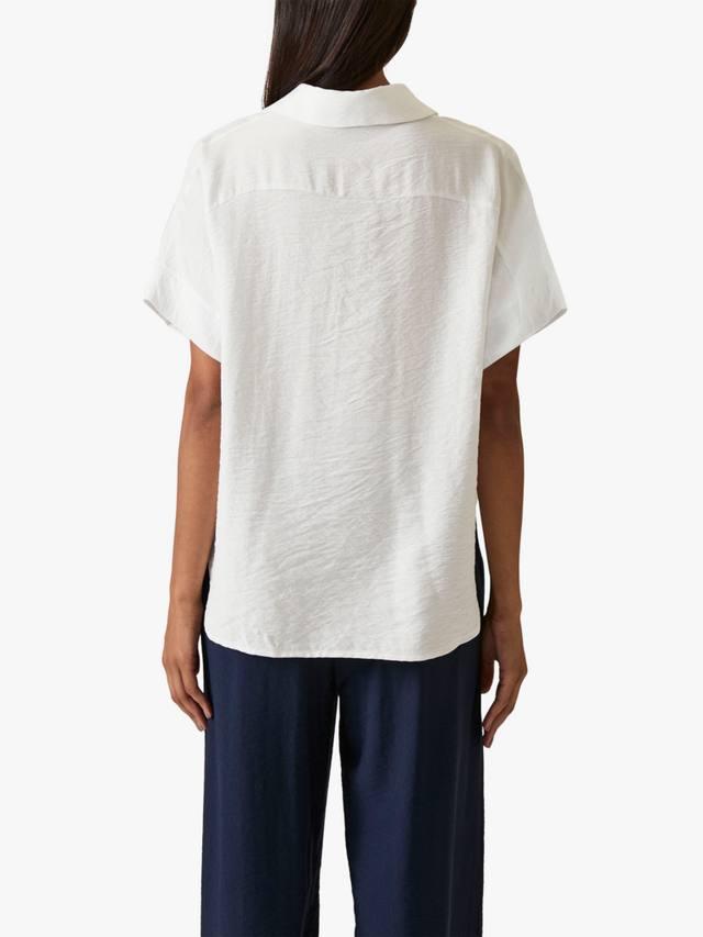 Украсьте свой гардероб этой блузкой James Lakeland из жатой текстурированной ткани. Структурированный воротник, короткие рукава и застежка на пуговицы спереди создают классический стиль. Горизонтальный шов в верхней части спины подчеркивает строгий силуэт, а слегка изогнутый подол немного удлинен сзади, добавляя нотку современной элегантности и дополнительной защиты. Вы можете носить ее как нарядно, так и непринужденно.