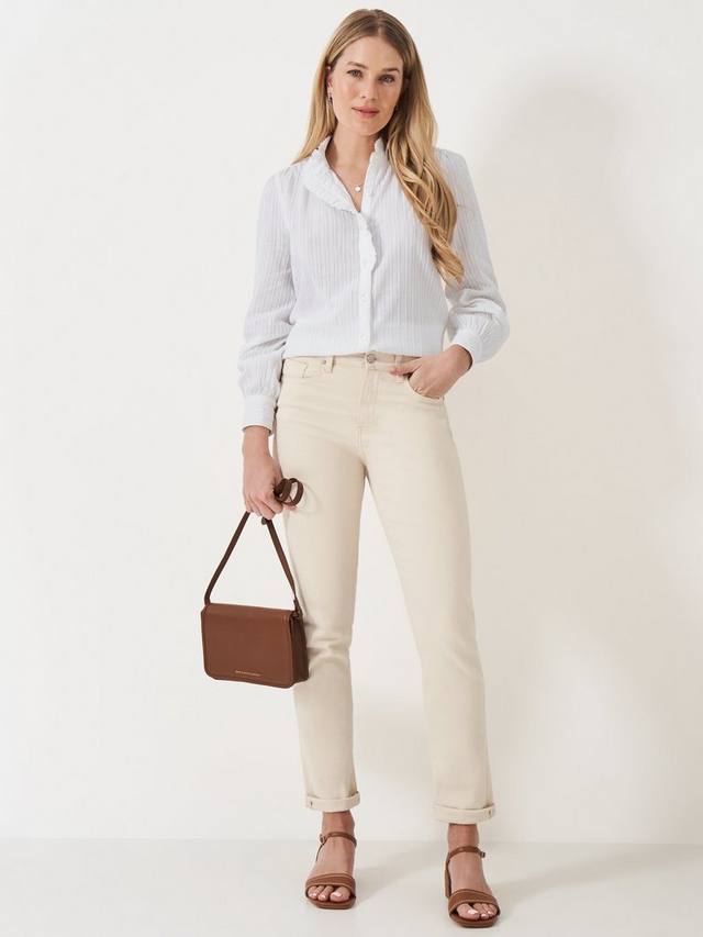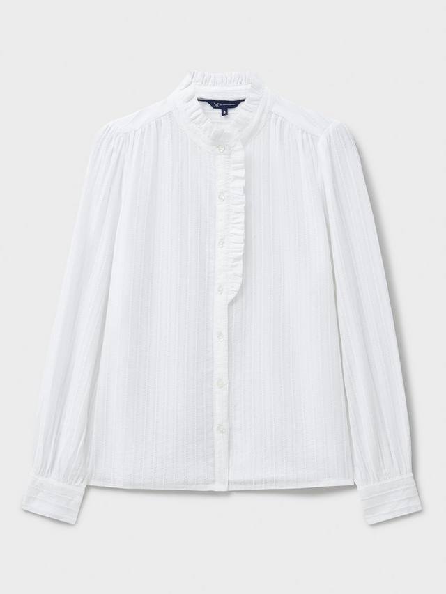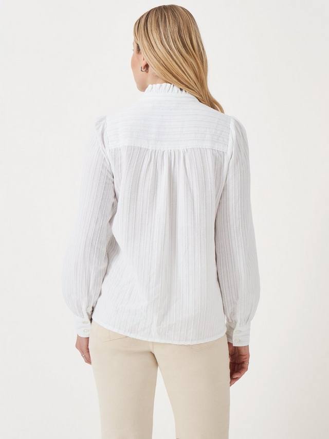 Блузка Harmony с оборкой из классической ткани шамбре. Она выполнена из мягкого хлопка и украшена фактурными полосками. Манжеты на пуговицах создают лёгкий эффект воздушного шара на рукавах, добавляя изюминку вашему образу. Кроме того, изящные оборки по краям и мягкие сборки придают топу привлекательный силуэт.