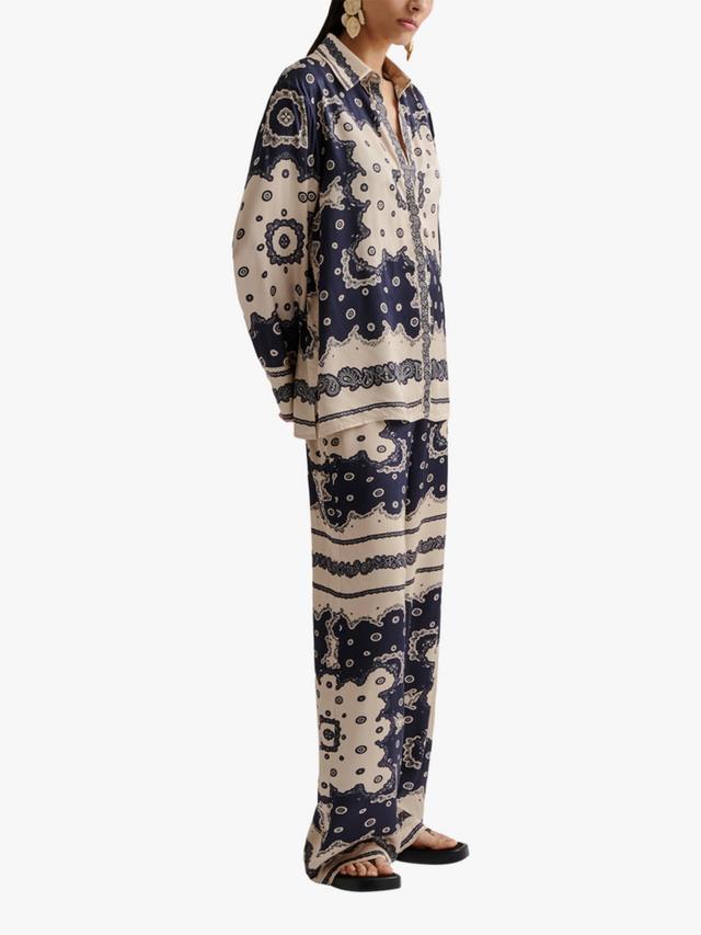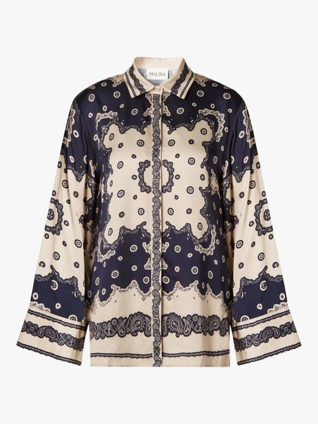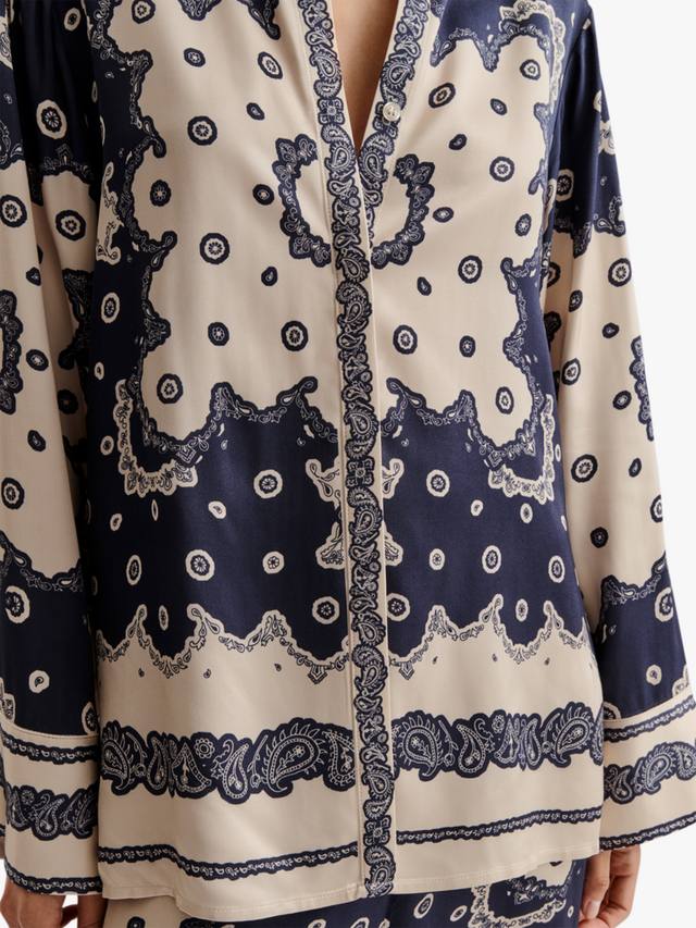 Стильная рубашка с принтом банданы, широким кроем и классическим воротником, идеально подходящая для повседневных прогулок и неформальных встреч, изготовлена из легких материалов, обеспечивающих комфорт и стиль.