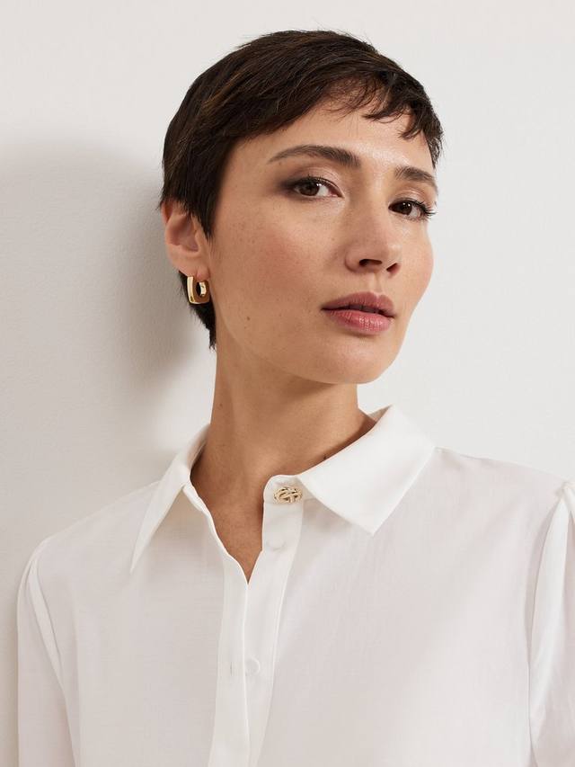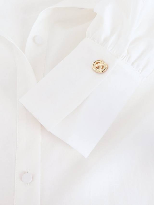 Рубашка Emmelima идеально впишется в ваш гардероб, как для работы, так и для выходных. Она дополнена золотистым узлом на классическом воротнике. Присборенные манжеты создают эффект рукава-блузона, подчеркнутый изысканной вышивкой. Сочетайте её с любимыми джинсами или брюками и каблуками для создания современного вечернего образа.