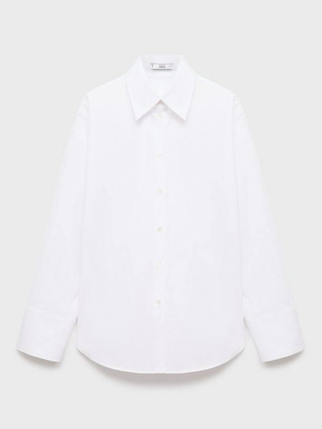 Рубашка Mango лёгкая и дышащая из чистого хлопка. Воротник-стойка и длинные рукава позволяют носить её в однотонном стиле. Отличный вариант на каждый день.