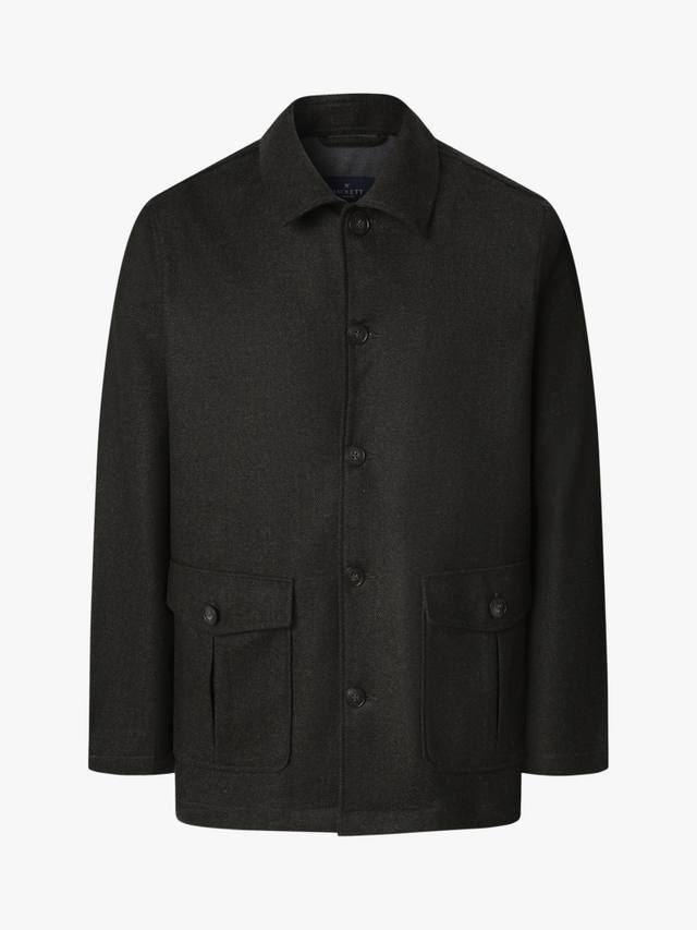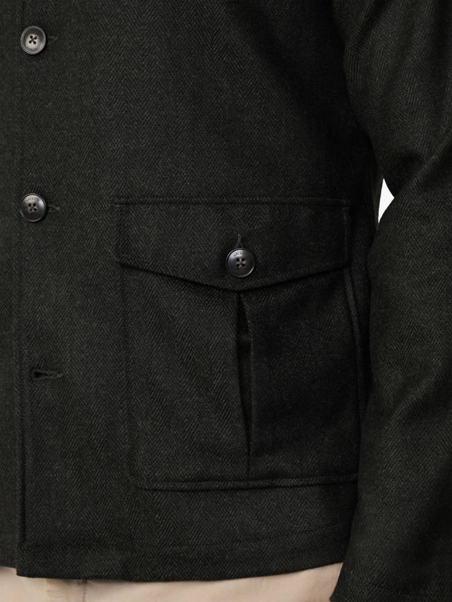Эта свободная рубашка из мягкой фланели с рисунком елочка в тон, с нижними накладными карманами с боковыми входами и фирменными манжетами на пуговицах.