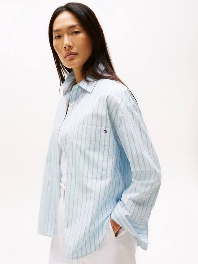 Эта свободная рубашка от Tommy Hilfiger из органического хлопка, несомненно, станет фаворитом вашего гардероба благодаря аккуратным полоскам. Классический воротник и длинные рукава позволяют легко подобрать нужный размер благодаря манжетам на пуговицах, которые можно регулировать, создавая свободный или приталенный образ.