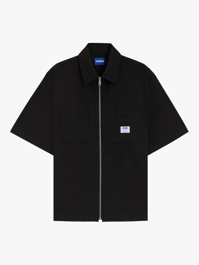 HUGO включает в себя острый воротник, застежку-молнию спереди и два нагрудных кармана, что создает эту рубашку с короткими рукавами — дизайн, вдохновленный рабочей одеждой, который, вероятно, станет вашим следующим любимым стилем smart-casual.
