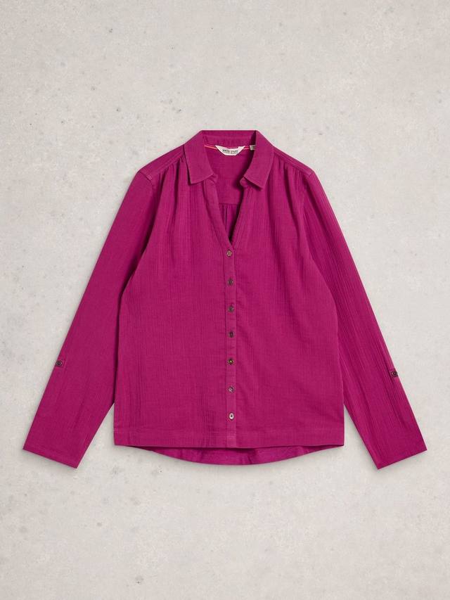 Удобная модель для любого случая: рубашка Annie от White Stuff сочетает в себе плетеный трикотаж и двухслойную ткань, обеспечивая непринужденный вид и изысканный вид.