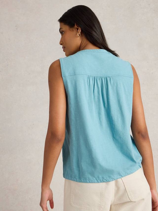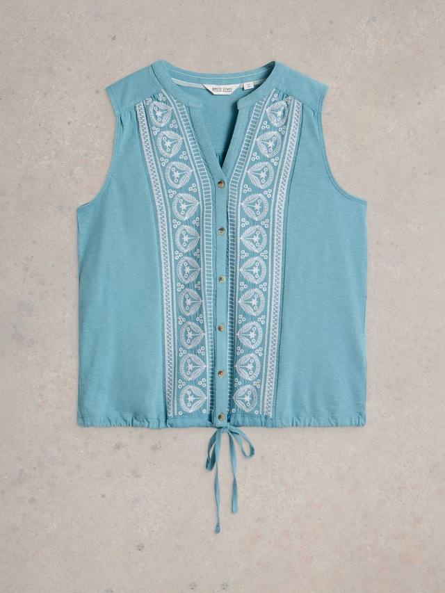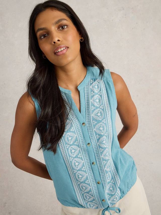 Рубашка без рукавов на пуговицах с завязкой.