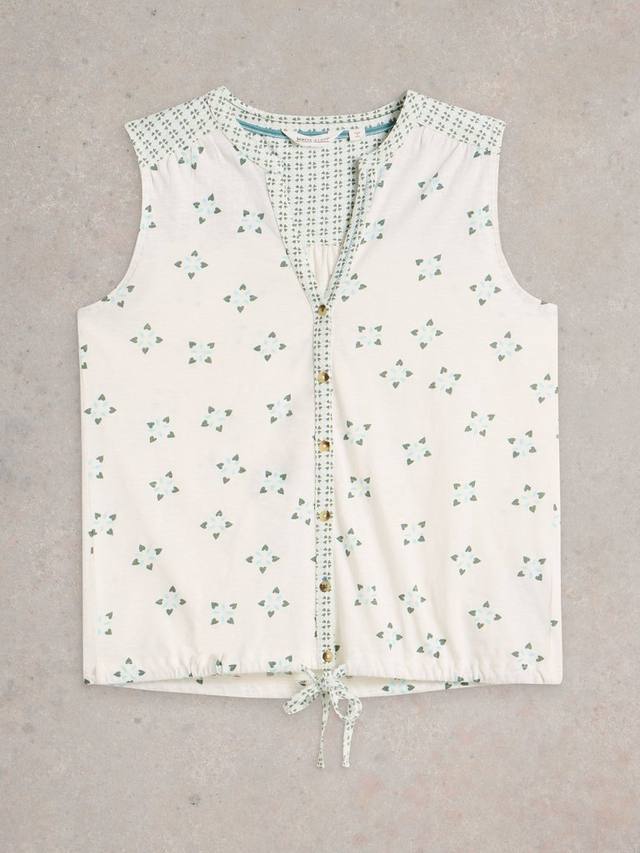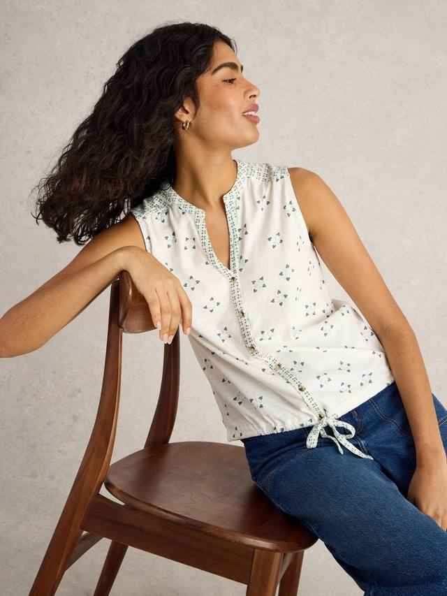 Рубашка без рукавов на пуговицах с завязкой.