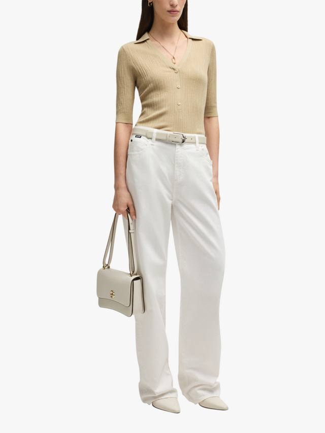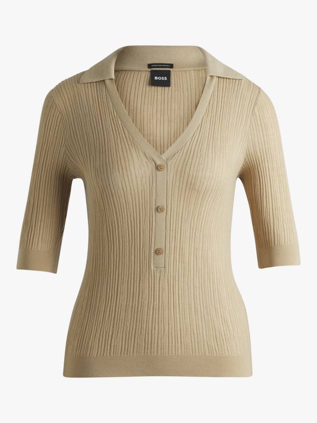 Эта рубашка-поло средней плотности от HUGO BOSS, простая и элегантная, с V-образным вырезом и рукавами до локтя, защищает от холода благодаря роскошной шерсти.