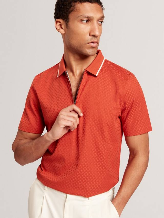 Эта рубашка-поло Ted Baker сочетает в себе элегантный дизайн и комфорт, обеспечивая уверенность в себе на весь день. Классический крой не сковывает движений, а воротник и короткие рукава легко сочетаются с вашими любимыми брюками, создавая элегантный образ, на который вы можете положиться.