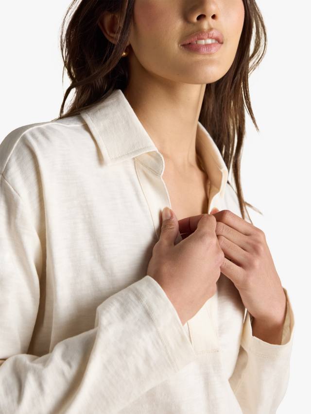Изготовленный из расчесанного хлопка, он невероятно мягкий и прочный, идеально подходит для прохладной погоды. Стиль преппи прослеживается в воротнике, который также добавляет спортивного акцента. Удобный крой обеспечивает комфорт и непринужденный вид. Эта модель незаменима в прохладную погоду, и вы будете носить ее снова и снова, где бы вы ни находились.