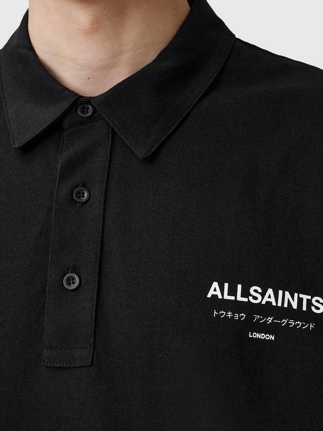 Классическая рубашка-поло от AllSaints с ненавязчивым фирменным принтом на груди и более крупной графикой сзади. Свободный свободный крой.
